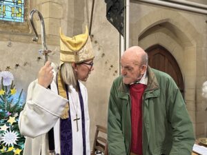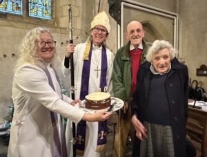 After the service Bishop Ruth met Rory Clarke who, at 93, recalls the members of his own family who built the church